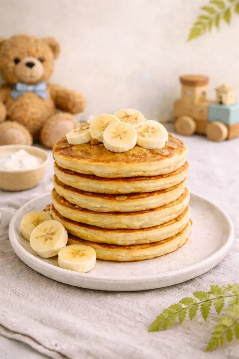 6–8mths: Smooth purée or finely mashed pancake mixed with breastmilk, formula, or yoghurt