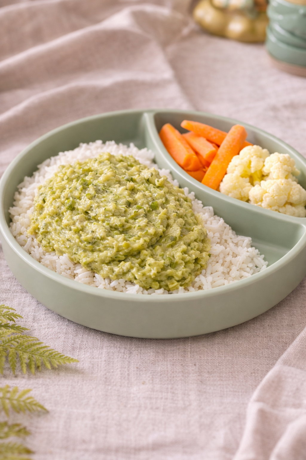 A gentle, veggie-packed pasta with creamy green goodness — rich in fibre, prebiotics and healthy fats to support growing tummies and early flavour exposure.