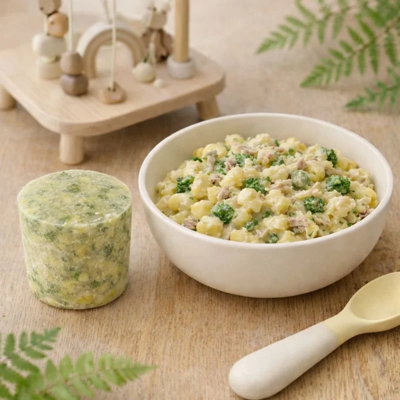 A gentle, protein-rich pasta dish packed with omega-3s, vegetables and calcium. This creamy tuna sauce supports brain development and growth while offering adaptable textures for every feeding stage — perfect for both spoon-feeding and baby-led weaning.